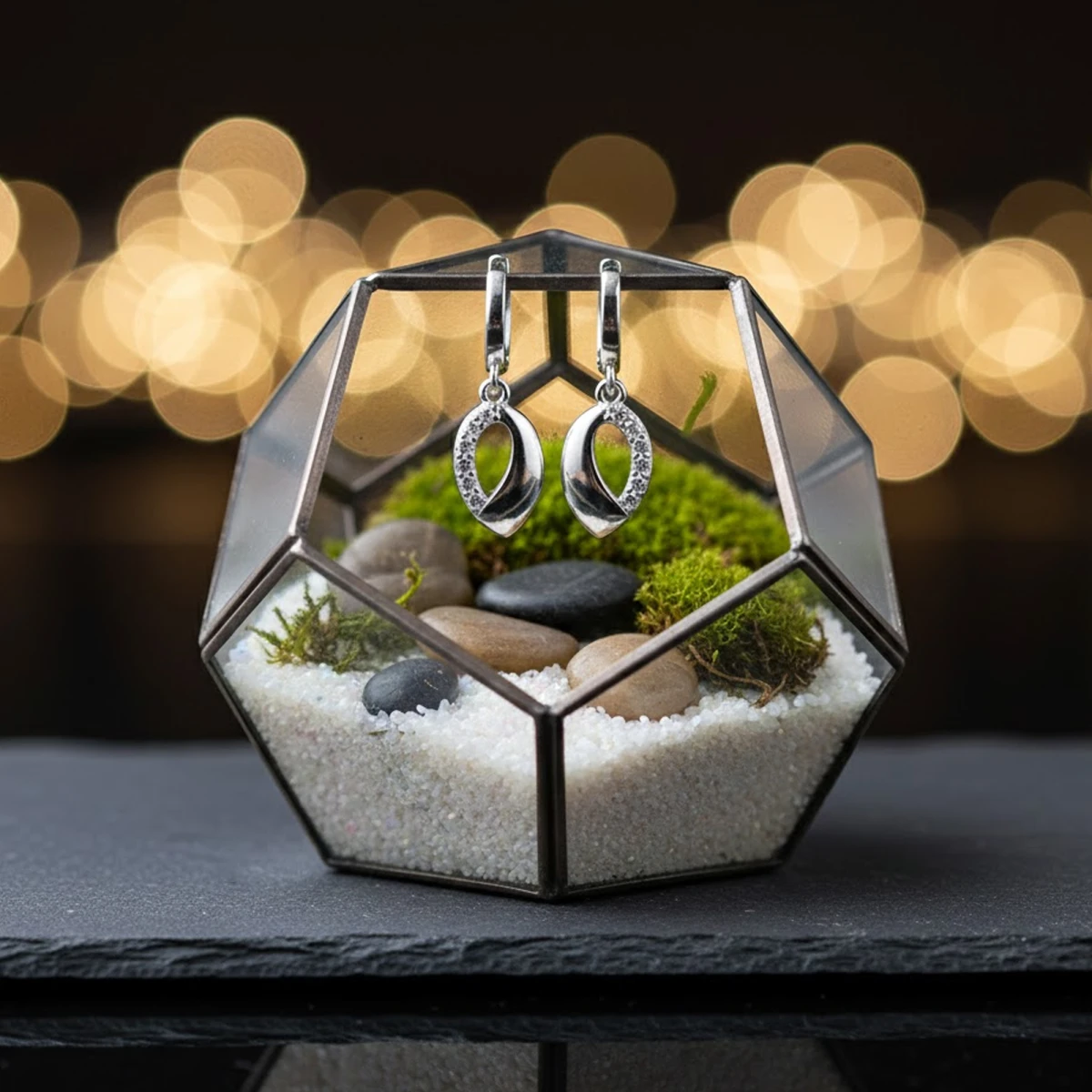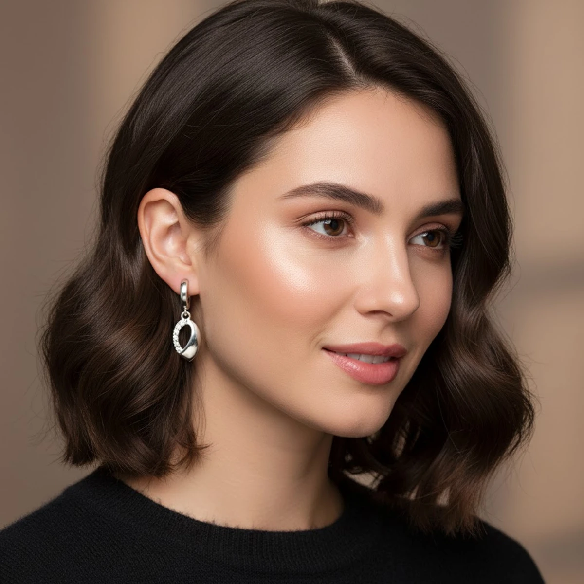 The Kāntikarṇa earrings showcase a sleek, polished silver design with a refined drop silhouette. Featuring a secure hinged clasp and a gracefully styled oval pendant, they blend simplicity with modern elegance. Perfect for adding a subtle yet sophisticated touch to any outfit.