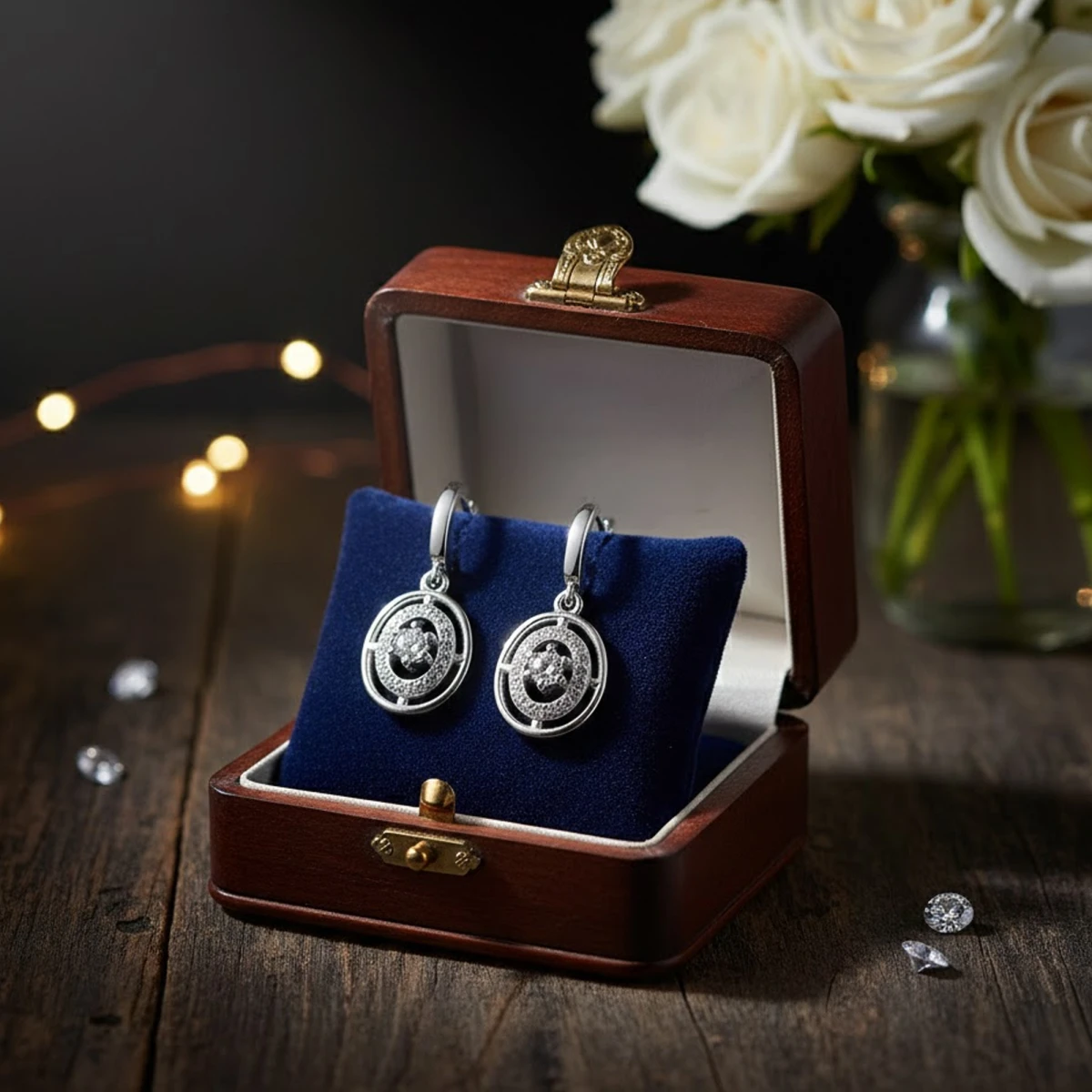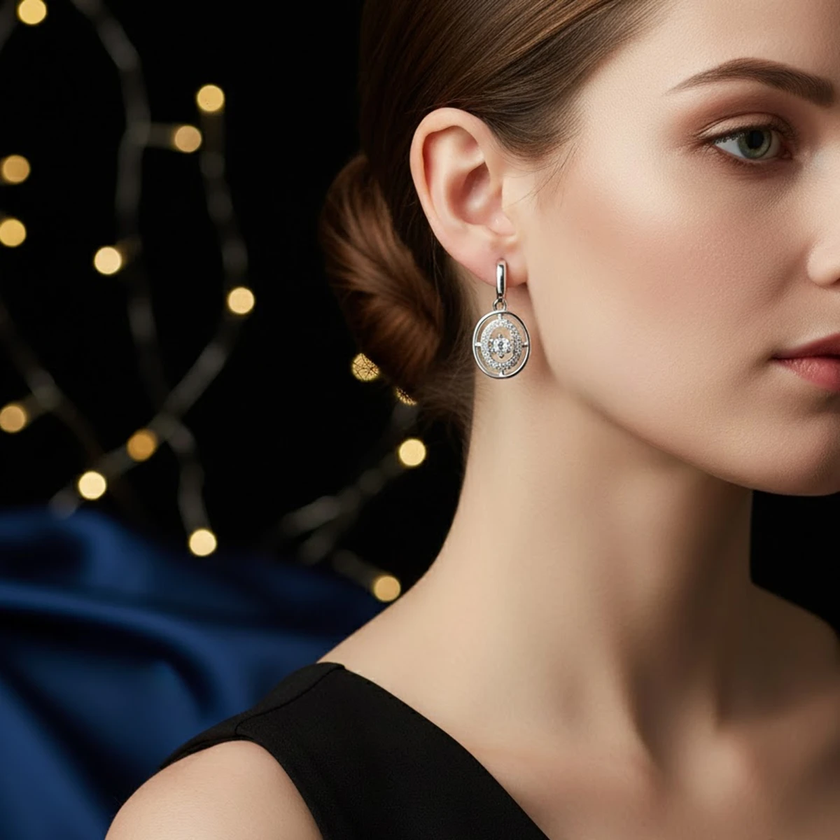 The Karṇikā earrings feature a polished silver huggie-style hoop paired with an intricately designed circular charm. This blend of sleek minimalism and ornate detailing creates a refined, eye-catching look. Perfect for adding a touch of sophistication to both casual and formal ensembles.
