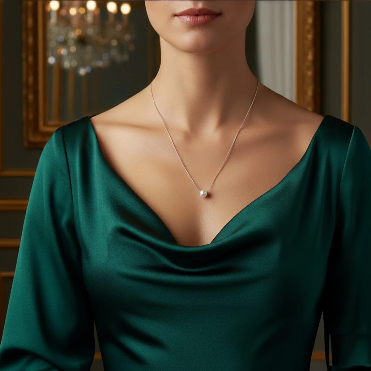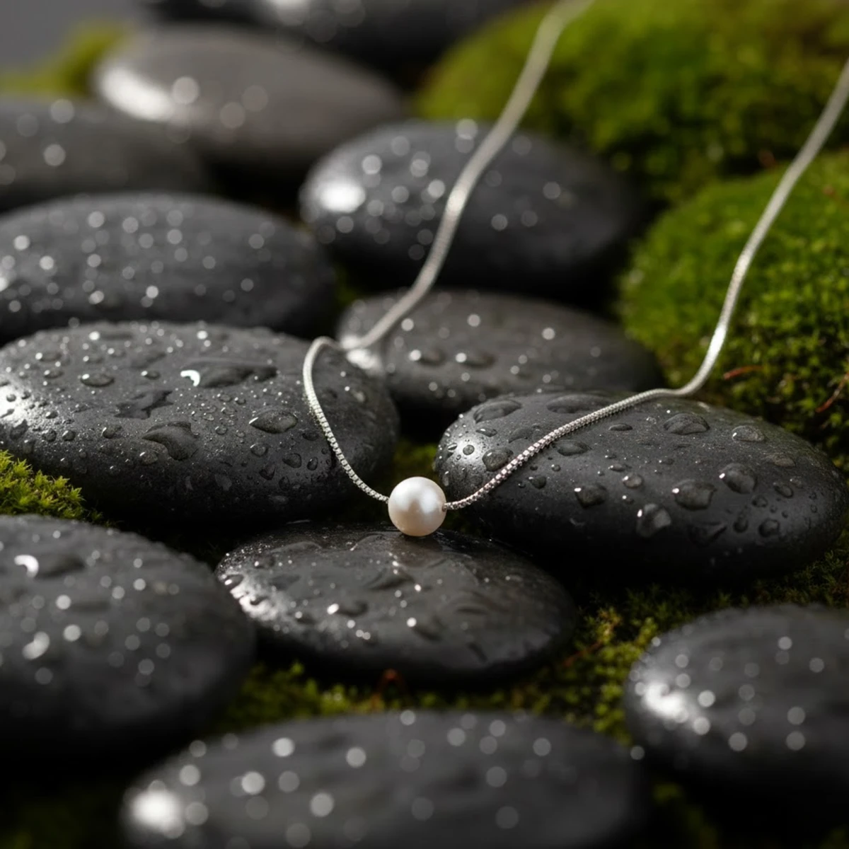 The Muktākaṇṭha chain showcases timeless elegance with its fine sterling silver snake design that drapes gracefully into a V-shape. At its center rests a luminous freshwater pearl, adding a touch of natural sophistication and classic charm to any look.