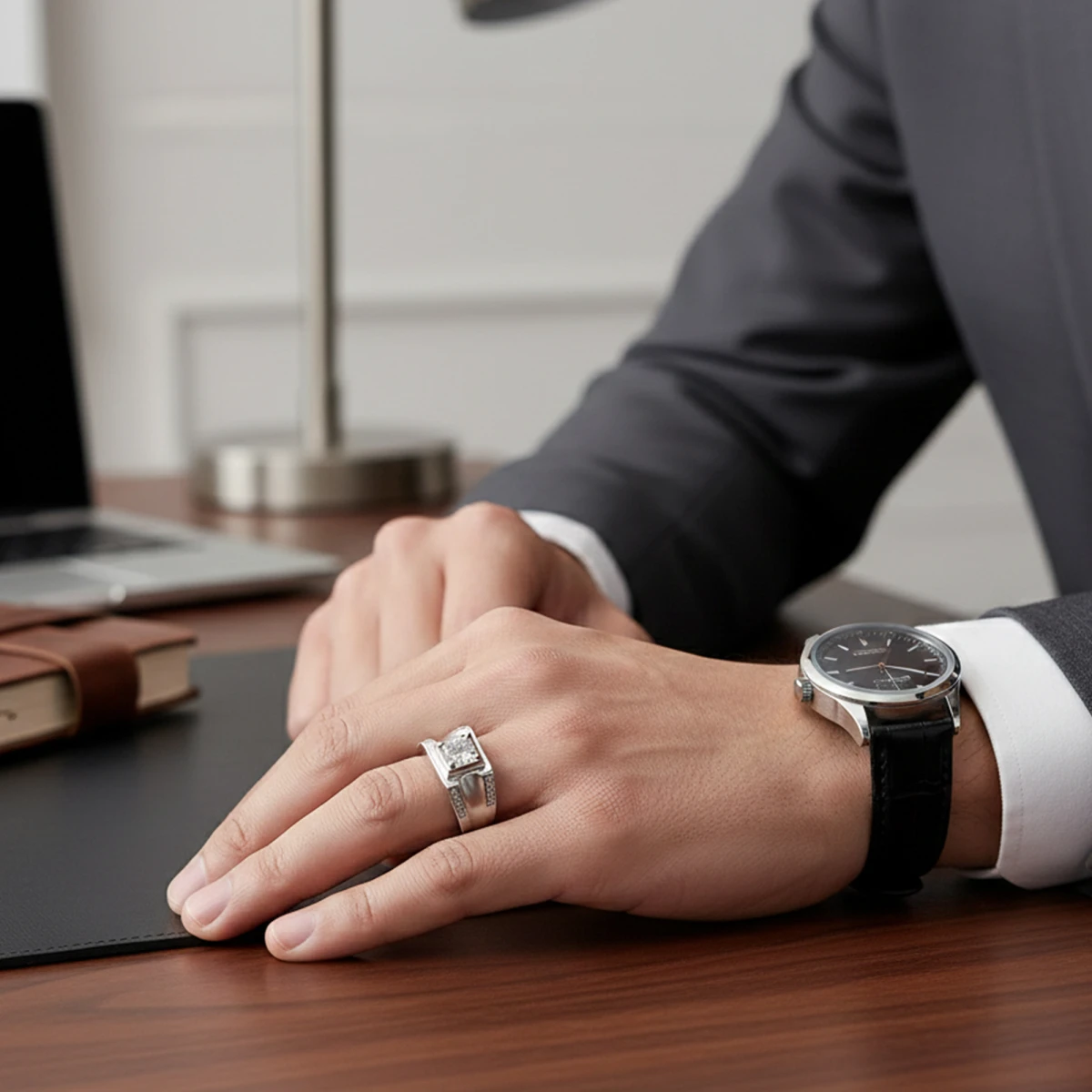 The Vibhū ring features bold lines and striking contrasts that capture a modern, confident aesthetic. Designed for both men and women, it perfectly balances strength and style. Its contemporary form makes it an ideal statement piece for everyday wear or special occasions.